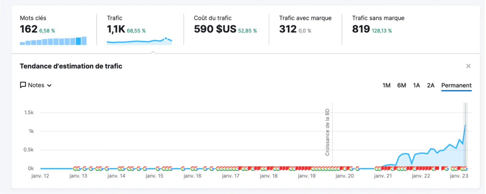 Au cours de ma carrière, j’ai eu la chance d’aider de nombreuses entreprises à booster leur trafic grâce à des techniques de référencement naturel. Cela inclut à la fois des missions en agence et en freelance. En travaillant ensemble sur une période de six mois, nous avons pu obtenir des résultats notables et durables.